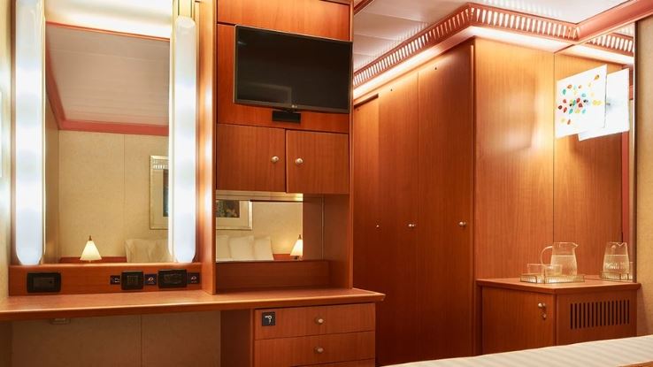 Du kan välja mellan de tre hytter vi erbjuder: inomhus, utomhus och utomhus med balkong. Du kan välja mellan dubbel- och fyrbäddshytter, som alla har, förutom sängarna, ett komplett badrum med dusch, TV, telefon, minibar, garderober, hårtork, europeisk kontakt och alla bekvämligheter du behöver för att tillbringa några dagar som inte går att upprepa.