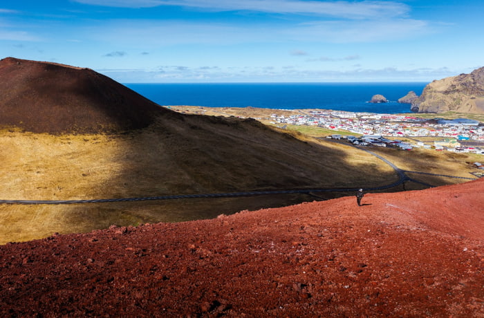 - Unika kontraster mellan grönt vatten, svart vulkansand och röda klippor